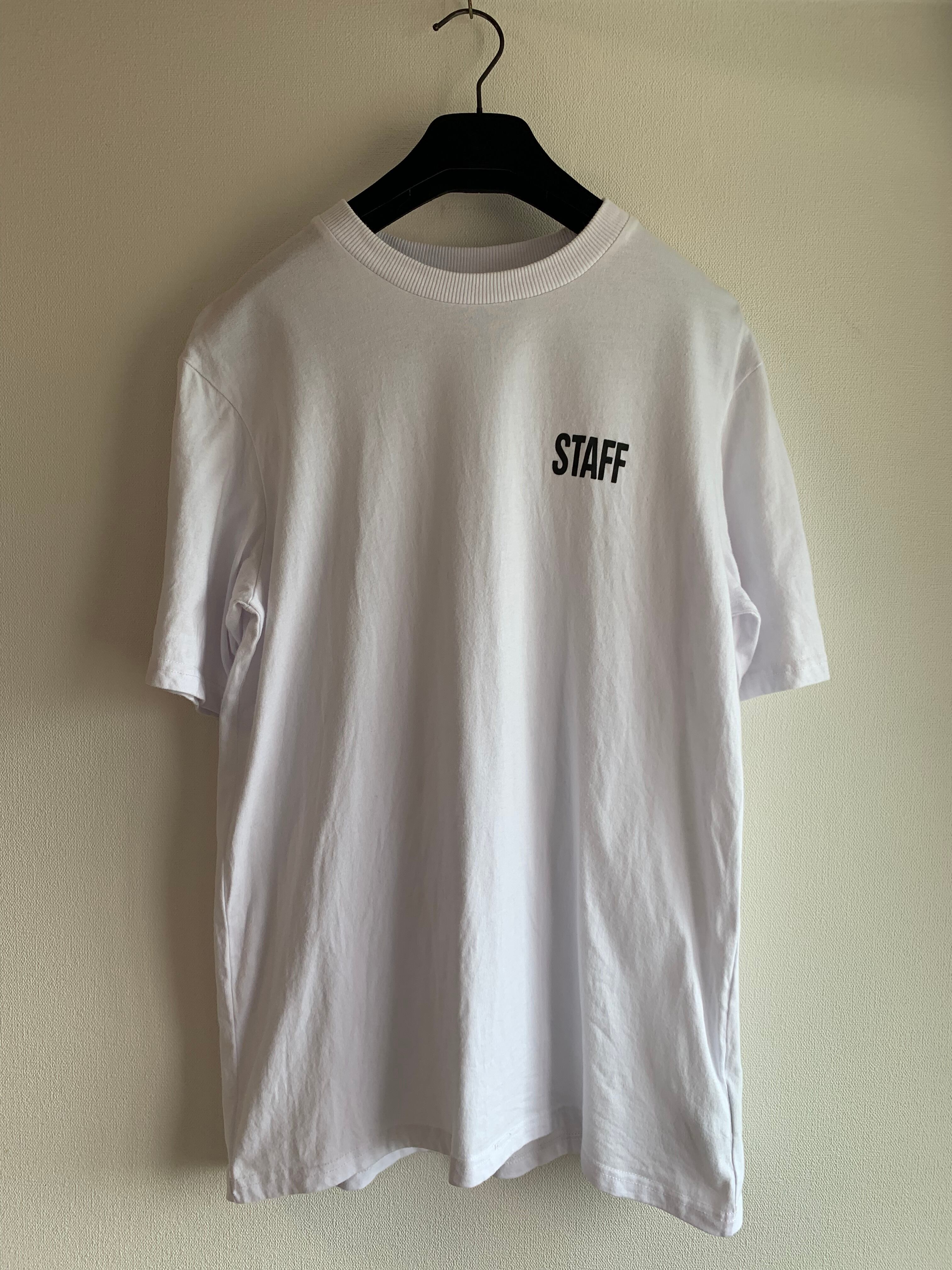 胸元に”Staff”のテキストプリント、背面にブランド ”VETEMENTS”のロゴが施されたシンプルなTシャツで、どんなボトムにも合わせやすく、コーディネートがクールに決まる一品です。